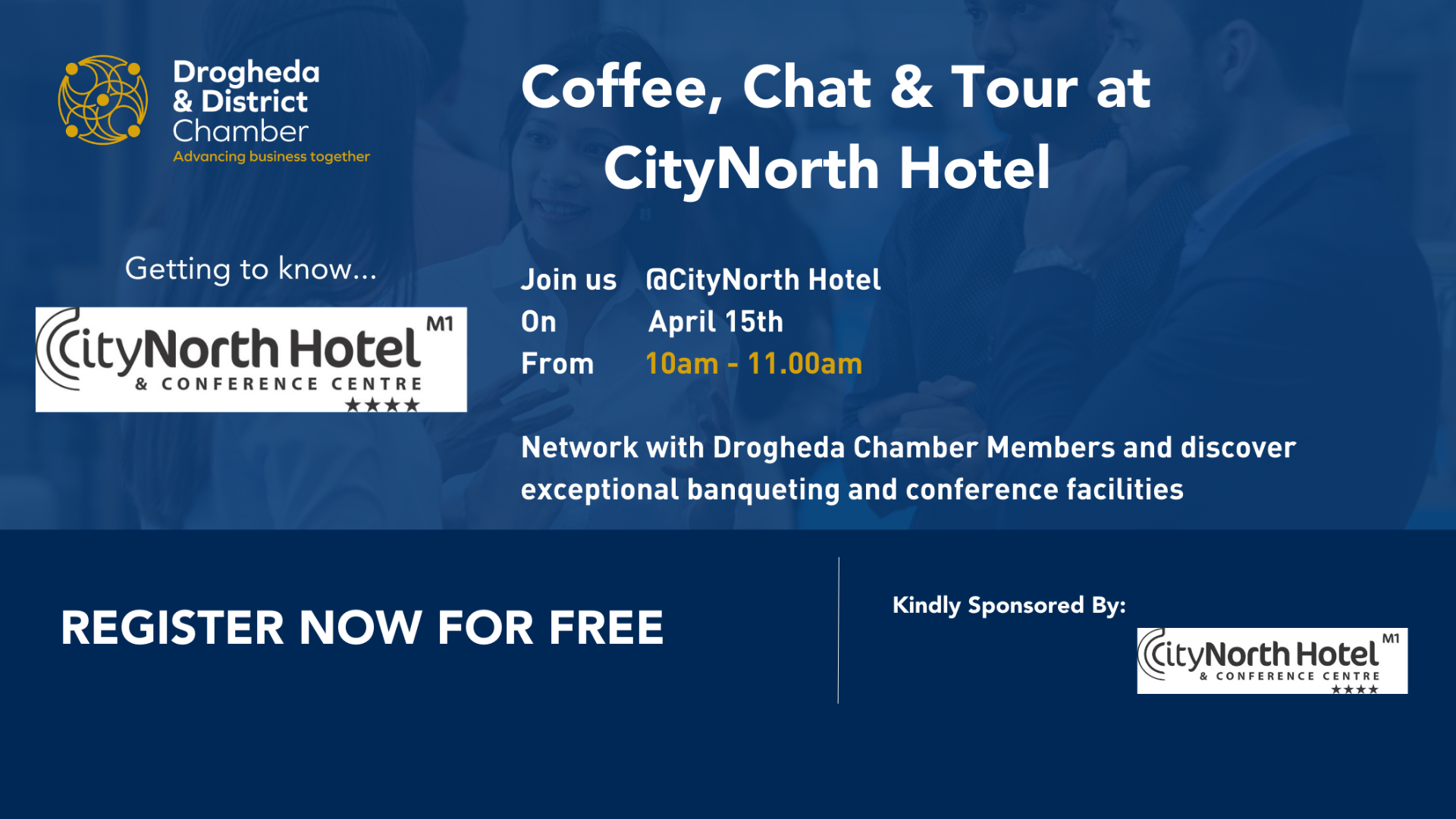 CityNorth Hotel is delighted to host the Drogheda Chamber “Coffee and Chats” event on April 15th, 2026. We look forward to welcoming local businesses and community leaders for a relaxed morning of conversation, networking, and meaningful connections in our comfortable and inviting setting. It’s a great opportunity to share ideas, build relationships, and enjoy a warm hospitality experience at CityNorth.
