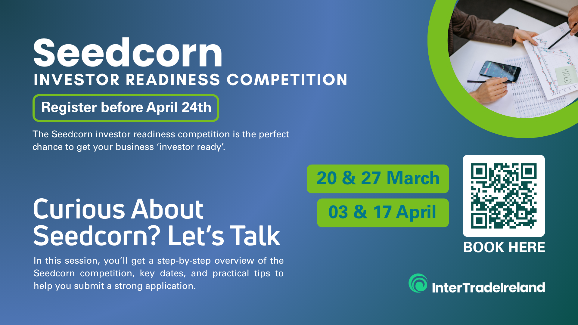 InterTradeIreland’s Seedcorn Investor Readiness Competition is the perfect chance to get ‘investor ready’. The Seedcorn contest mirrors the real-life investment process. Participants, who are in with a chance to win a share of a €800,000 cash prize fund, can secure expert feedback on their business plans and pitches, improve their investor readiness and gain exposure to investors, all while boosting their firm’s profile.